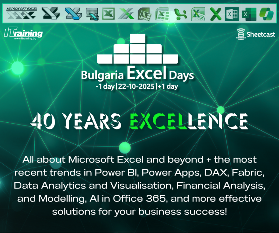 Tази година Bulgaria Excel Days е посветена на 40-та годишнина от създаването на Microsoft Excel и ще премине под наслова „40 Years Excellence”.