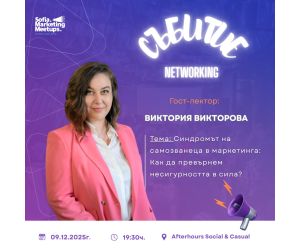 На 09 декември те каним на Sofia Marketing Meetups: "Синдромът на самозванеца в маркетинга - как да превърнем несигурността в сила." Една от онези теми, за които рядко се говори публично, но която засяга почти всеки в динамичната маркетинг среда.
