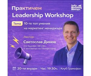 Срещаме се за интерактивен workshop, посветен на уменията, които превръщат добрия маркетолог в лидер. Без buzzwords и без тежка теория. Практичен разговор за отговорност, вземане на решения, влияние и мислене на управленско ниво.